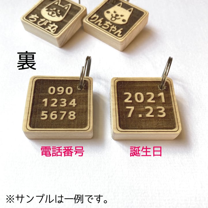 表にお名前 裏に電話番号or誕生日が入ります。(両面同じもOK)