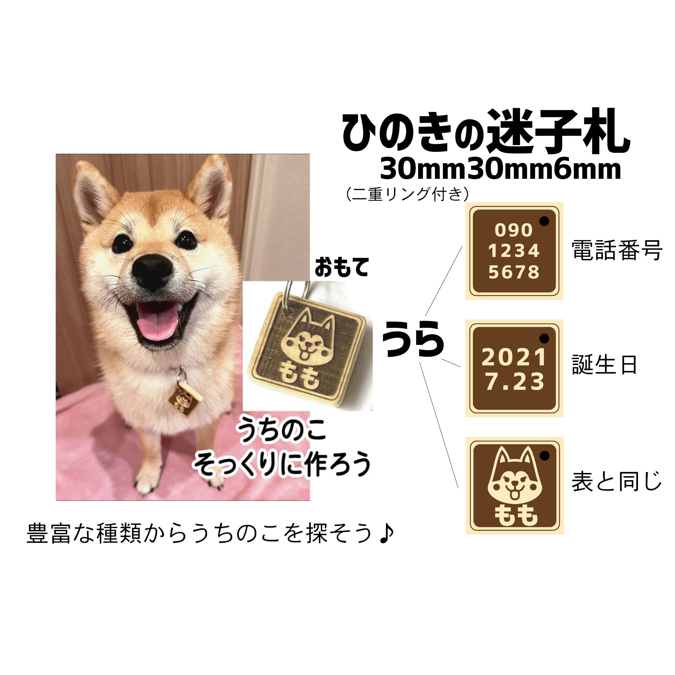 桧を使用したうちのこ迷子札です。