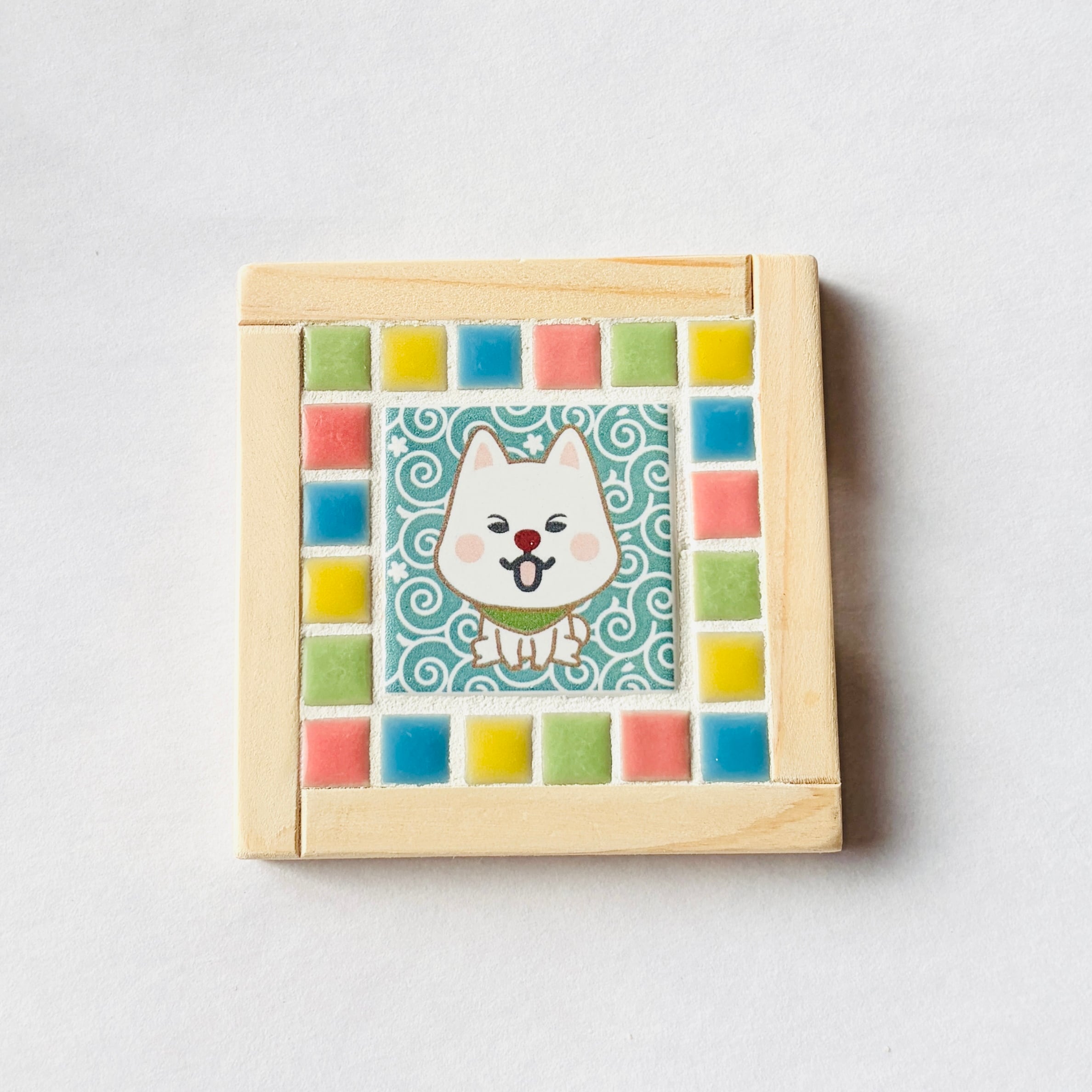 桧の枠組とポーセラーツで製作したオリジナルのタイルを組み合わせた一品。