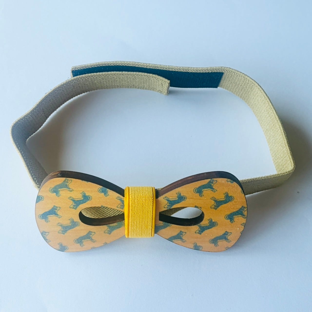 蝶ネクタイ 柴犬落ちてます柄イエロー